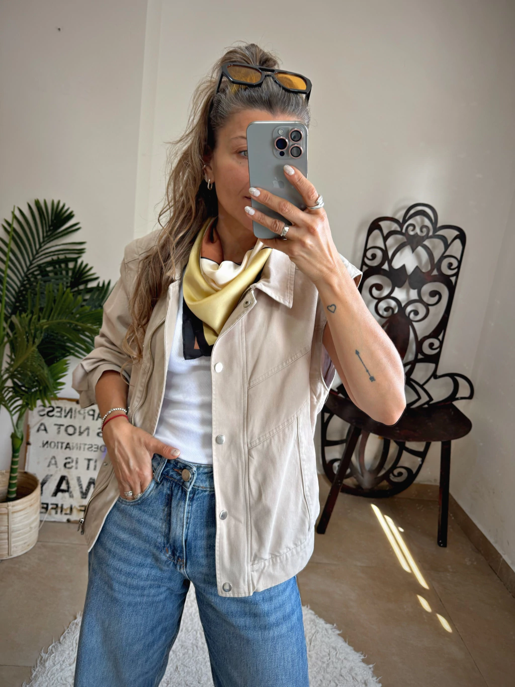 Campera solo en color beige con las mangas desmontables con cierre y botones en el frente, tiene en la parte trasera de la cintura elasrico. Disponible del talle S al L.