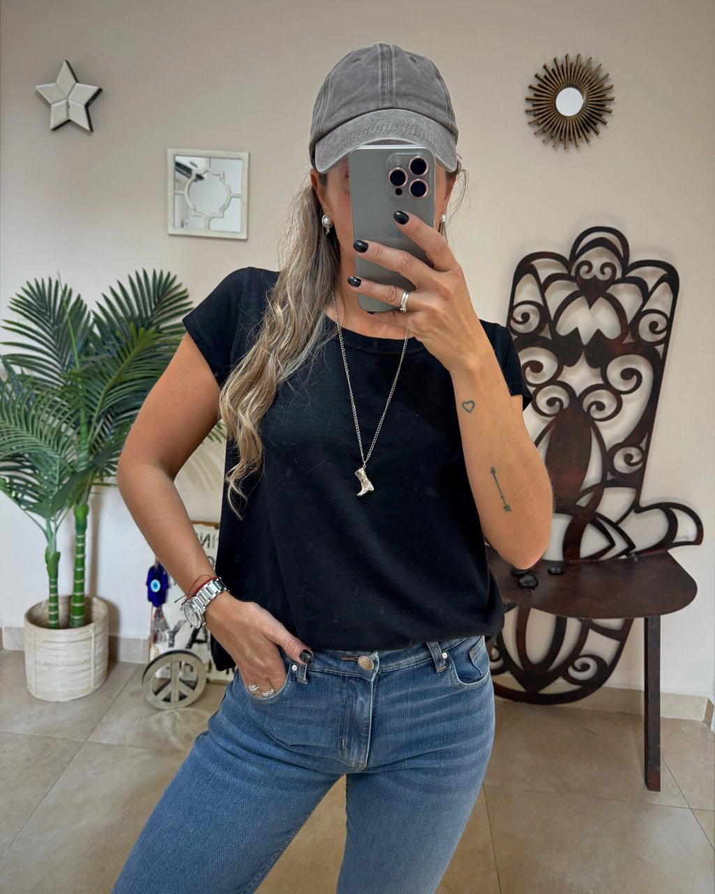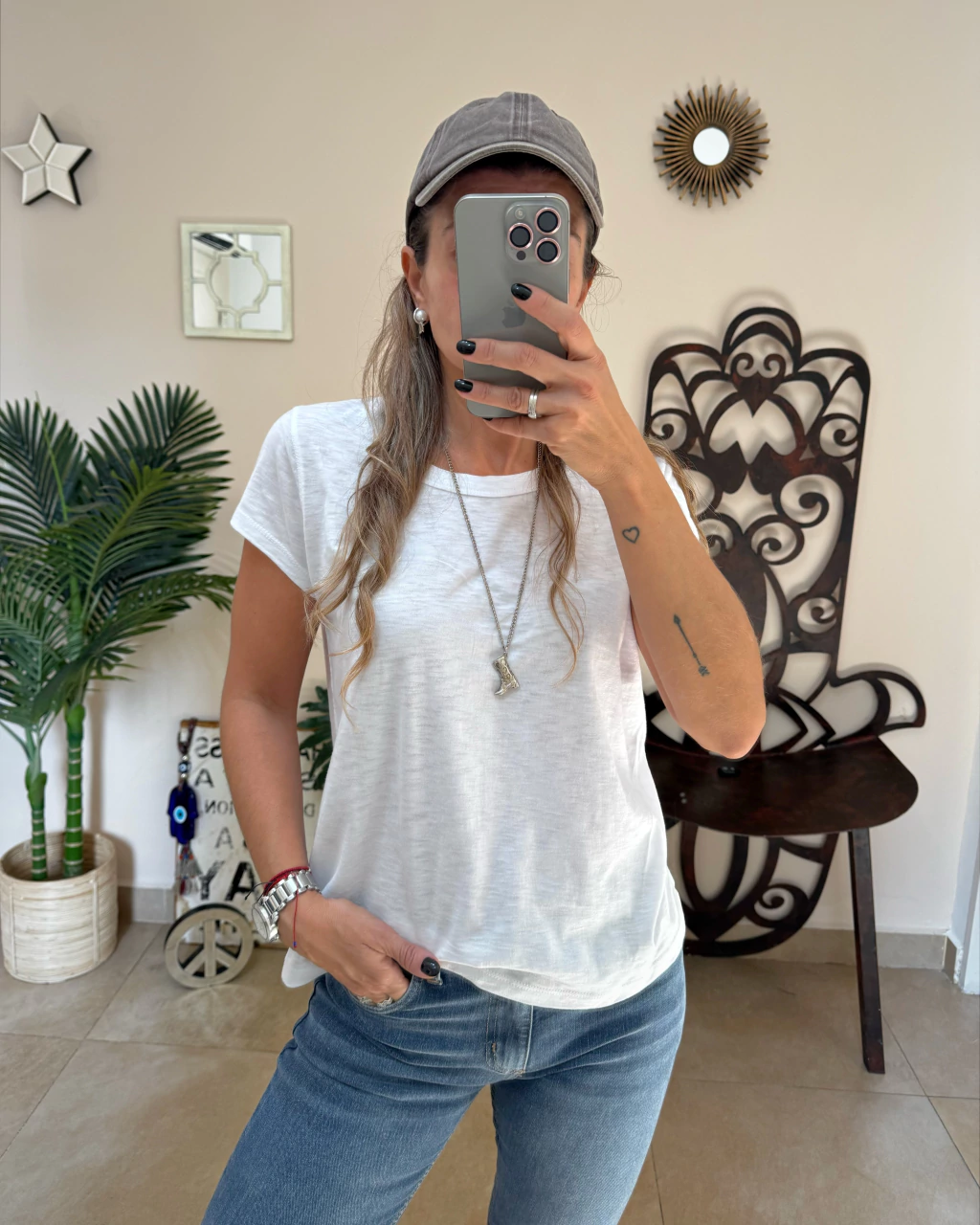 Remera basica de flame de St. Marie, cuello redondo, viene en color verde, gris, chocolate, blanca y mostaza. Diponible del talle S al L.