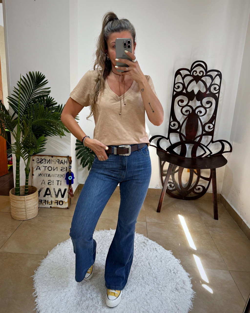 Remera de St. Marie de flame, escote en ¨V¨ y bordado de la marca en la parte inferior a tono, viene en color blanco, verde, negro y bordo. Disponible del talle S al L.