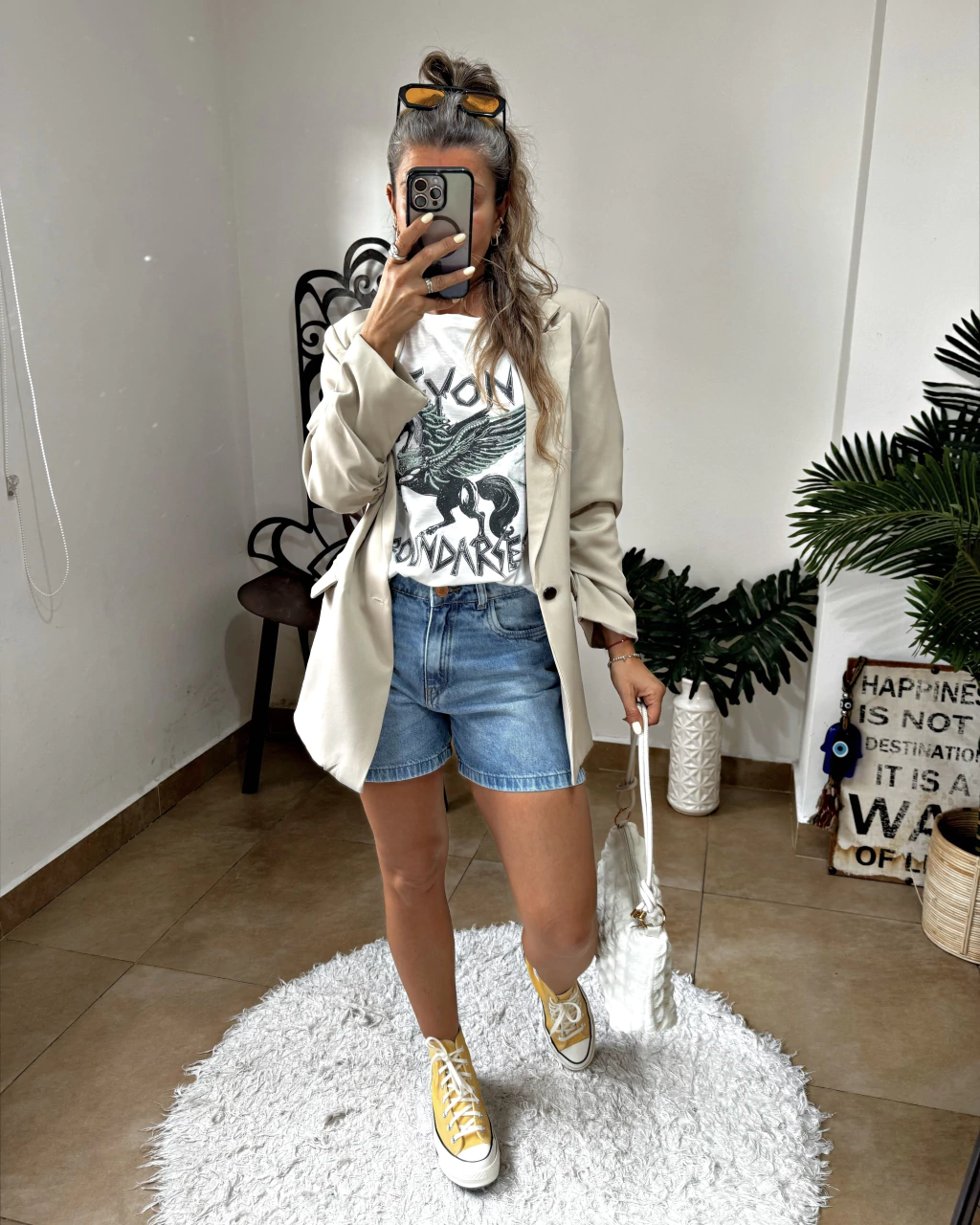 Short-Bermuda tiro medio-alto. Disponible del talle 36 al 46.